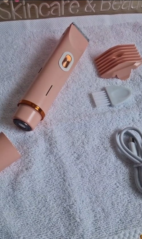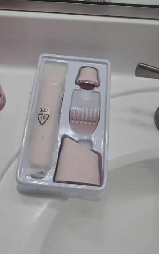 Estuche con depiladora, cable USB, cepillo y cabezal de precisión. ✔