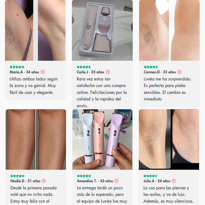 La duración de los resultados varía según el ritmo natural de crecimiento del vello corporal. Sin embargo, Lunéa garantiza una piel suave y fina durante más tiempo, mucho más que un afeitado tradicional. Su tecnología de precisión permite un afeitado más apurado, lo que retrasa la aparición del vello para una comodidad prolongada.
