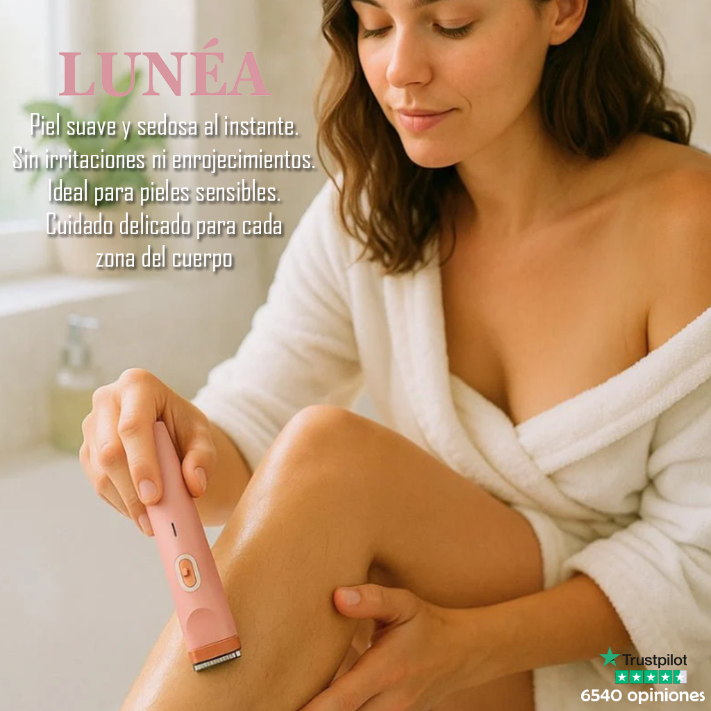 Lunéa depila suavemente, sin cortes ni quemaduras. Piel lisa e impecable.